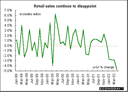 Indicator scoreboardGermany — April Statistics Office seasonally and workday adjusted retail sales excluding autos and gas stations fell 2.4 percent and 1.9 percent when compared with last year. However, the Bundesbank seasonally adjusted data excluding auto and gas station sales rose 1.8 percent in April but declined 2.2 percent on the year. Data issued by the Bundesbank for real seasonally adjusted retail sales including autos and gas stations rose 1.5 percent but fell 2.2 percent when compared with last year. The explanation for the difference in results is the different seasonal adjustment methods the two agencies use. They can give quite different results, particularly in March and April due to the changing time of Easter.  April seasonally adjusted industrial production rose 0.2 percent but fell 2.0 percent when compared with last year. The slight increase was due solely to a 2.3 percent gain in investment goods production and a 2.4 percent rise in energy goods output. All other categories declined on the month. Total manufacturing output rose 0.3 percent, the same as in March. Construction sector output dropped 3.0 percent after sinking 6.2 percent in March. Excluding construction, April industrial production rose 0.4 percent on the month after rising 0.3 percent. Seasonally adjusted west German industrial output rose 0.3 percent after falling 0.2 percent in March, while in the east production fell 1.1 percent in April after a 1.0 percent drop in March.  April non-adjusted merchandise trade surplus declined to €9.3 billion from €11.7 billion in March. On a seasonally and calendar adjusted basis, exports rose 2.1 percent while imports rose 4.8 percent. Compared to a year ago, April unadjusted exports rose 5.7 percent while unadjusted imports fell 0.5 percent. The Statistical Office data must be interpreted cautiously, since they are adjusted for neither seasonal nor inflation effects. France — April seasonally and workday adjusted industrial output rose 0.4 percent and was up 0.9 percent when compared with last year. Manufacturing output was up 0.5 percent and 0.2 percent on the year. Auto output was up 1.2 percent for the second month. Consumer goods rebounded 0.9 percent after a 0.3 percent dip in March. Capital and semi-finished goods output remained soft, with monthly growth up marginally to 0.3 percent and 0.2 percent, respectively. Energy output rose 1.4 percent after rising 2.1 percent in March. April seasonally adjusted merchandise trade surplus rose to €1.894 billion. Exports rose 4.7 percent led by increases in capital goods and auto industry products. Imports rose 1.8 percent led by autos and basic/semi-finished goods. The energy deficit rose to €1.861 billion from €1.832 billion. Italy — First quarter gross domestic product rose 0.2 percent and 0.1 percent when compared with last year. The first quarter's growth was due entirely to a rebound in inventories; domestic demand and net exports declined. GDP data are unique among large eurozone countries in that they are seasonally but not workday adjusted.  April seasonally and workday adjusted industrial production sank 1.0 percent after a 0.7 percent decline in March, largely due to the general strike held on April 16. When compared with last year, industrial production dropped 3.6 percent. April consumer goods output fell 2.1 percent, output of investment goods shed 2.3 percent while intermediate goods edged up 0.2 percent. Britain — May output prices rose 0.3 percent and 0.1 percent when compared with last year. Core output prices, which exclude food, tobacco, petroleum and beverages, rose 0.2 percent and 0.4 percent on the year. Some of the latest rise in output prices was due to the introduction of a new levy April 1 on the extraction of aggregates (sand, gravel and rock). Seasonally adjusted input prices fell 0.7 percent and were 6.2 percent below levels of a year earlier. The main downward influence on input prices was a 1.2 percent drop in crude oil prices. Other downward effects came from fuel, imported food materials and other imported materials.  April manufacturing output rose 0.8 percent but it was down 4.4 percent on the year, while industrial output was up 1.1 percent on the month and down 4.1 percent on the year. Within manufacturing, there was increased output in 10 out of the 13 sub-sectors, with the largest rises in electrical and optical equipment and transport equipment.  April global merchandise trade deficit fell to Stg2.433 billion from Stg2.765 billion in March. Much of the improvement was due to a significant fall in the deficit with EU countries. The trade gap with non-EU countries widened slightly. Global goods exports rose 2.6 percent while imports rose 0.4 percent. Excluding oil and erratic items, the deficit narrowed from Stg3.279 in March to Stg2.994 in April. May claimant count unemployment rate slipped down to 3.1 percent from 3.2 percent in the prior month. The number claiming benefits fell by 7,000. Since September 2001, the claimant count measure has fallen by 7,200 despite a no-growth economy through both the fourth quarter of last year and the first quarter of this year. Employment on International Labor Organization measure rose 88,000 in the February to April period when compared with the previous 3 months. The employment rate rose to 74.6 percent, up 0.1 percentage points from the previous three-month period.  Average earnings for the three months to April rose 3.3 percent from 2.9 percent when compared with the same months last year. April average earnings rose 4.0 percent from 3.5 percent. Excluding bonuses, earnings growth fell to 4 percent on the year from 4.3 percent in March. The main upward pressure on earnings came from private sector earnings growth, which increased to 3.1 percent from 2.6 percent in March. Unit wage costs rose 3.9 percent in the three months to April compared with the previous year.  Asia Japan — May domestic wholesale prices fell 1.2 p