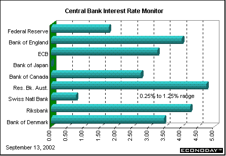 Investors who were looking for a respite in the form of lower interest rates have been disappointed the past two weeks. The European Central Bank, Bank of England, Bank of Canada and the Reserve Bank of Australia left key interest rates unchanged at 3.25 percent, 4.0 percent, 2.75 percent and 4.75 percent respectively. Growth is weak virtually everywhere with the exception of Australia. The Bank of Canada explicitly stated that it was leaving rates unchanged because of the weak U.S. economy. ECB President Wim Duisenberg said that risks to price stability appear balanced, while acknowledging that growth was weak. Duisenberg expressed concern that higher oil prices will reignite inflation. The eurozone has been more vulnerable to increases in oil prices than the United States.