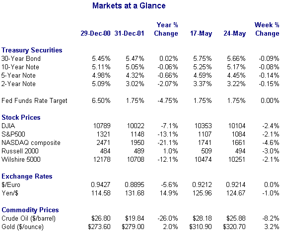 Weekly and yearly percent change column reflects percent changes for all components except interest rates. Interest rate changes are reflected in simple differences.