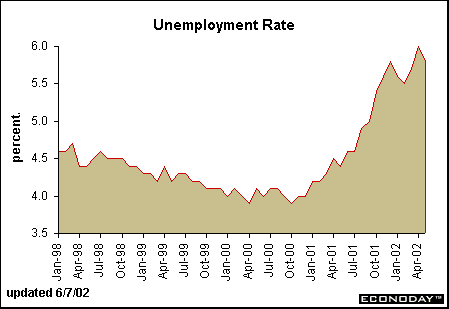 The EconomyMeager improvementsThe civilian unemployment rate edged down to 5.8 percent in May from a level of 6 percent in June. This was better than economists’ consensus forecast and a 0.2 percentage point change is considered statistically significant. Yet, market players were not impressed when they learned that the number of unemployed persons was not all that different from the level recorded last December. The disappointment with this portion of the report is unfairly severe. The jobless rate is a lagging indicator of activity after all. Moreover, the household survey reveals that employment jumped by 441,000 in May after a more modest 82,000 gain in April.