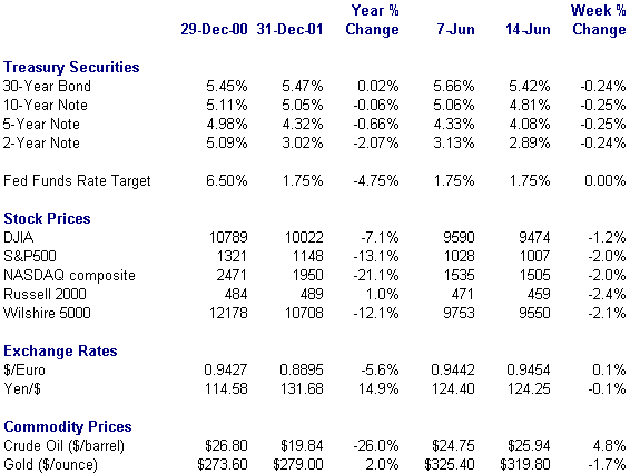 Weekly and yearly percent change column reflects percent changes for all components except interest rates. Interest rate changes are reflected in simple differences.
