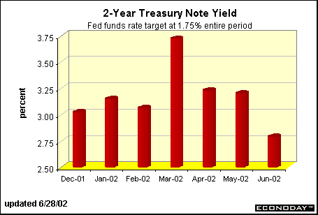 Now what?Bond investors have been whipsawed by the fluctuations in the equity market. When equity prices rise, bond prices have declined and vice versa. Bond market players, more than equity investors, are generally keyed to FOMC behavior. Earlier in the year, bond investors felt that the Fed would soon start raising its federal funds rate target because the economy was recovering. But since March, when equity prices and bond yields were at their highest levels of the year, investors have modified their expectations. By the beginning of June, it was becoming evident that the Fed was not likely to raise rates this summer. Aside from the fact that Treasuries are tied to Fed behavior, they are also the securities of choice for safe-haven investment. As investors fled the equity market in June, Treasury yields have fallen.