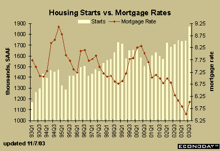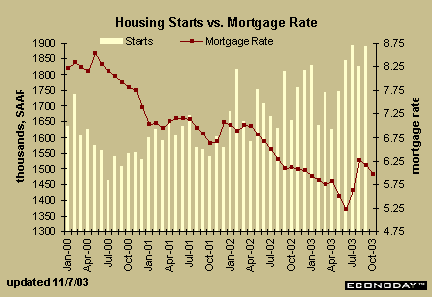 Income and interest rates are the two key factors that affect housing activity. More housing construction translates into increased demand for furniture and appliances as consumers refurnish their new homes. The rate of housing construction peaked in the first quarter of 1999, but held up well in 2000 and 2001 and accelerated in 2002 while mortgage rates hit new lows.