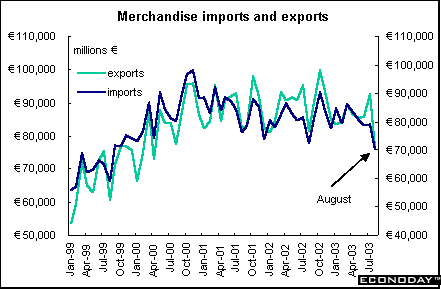 Merchandise trade - Trade plays an important role in European growth. German and Italian manufacturing sectors especially benefited from the weak euro and it allowed them to sell their products overseas at reduced prices. However, worldwide growth weakened demand at the same time that the euro rose in value, making exports more expensive while allowing imports into the EMU at more advantageous prices.