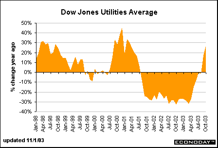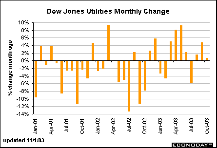 The Utility index edged up 0.7 percent in October, a modest gain relative to the other Dow indexes.