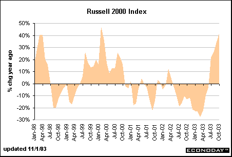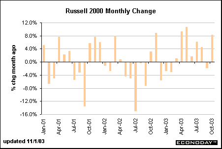 The Russell 2000 rose 8.3 percent in October, more than most of the other key market indexes. It isn't unusual to see large gains in the small cap market in a recovery.